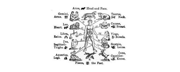 Христианская церковь долгое время относилась к астрологии настороженно, с одной стороны, «звёзды — творение Божие», с другой — предсказания считались колдовством. В 1227 году Папа Григорий IX официально запретил предсказывать «детали судьбы». Однако именно в монастырях переписывались труды Птолемея и арабских астрологов. В арабском мире IX–X вв. астрология цвела: в Багдаде и Кордове создавались обсерватории, писались «Книги судеб». Через переводы арабов астрология вернулась в Европу, уже как наука, тесно связанная с медициной и алхимией. Уже в эпоху Ренессанса любой врач был обязан знать астрологию. Считалось, что положение Луны и планет влияет на тело и болезни. Например, Леонардо да Винчи и Парацельс видели в человеке «малый космос», отражение звёзд. Также в это время существовали «астрологические человеко-рисунки» (Homo signorum), где каждому органу соответствовал знак Зодиака (например, сердце — Лев, желудок — Дева).