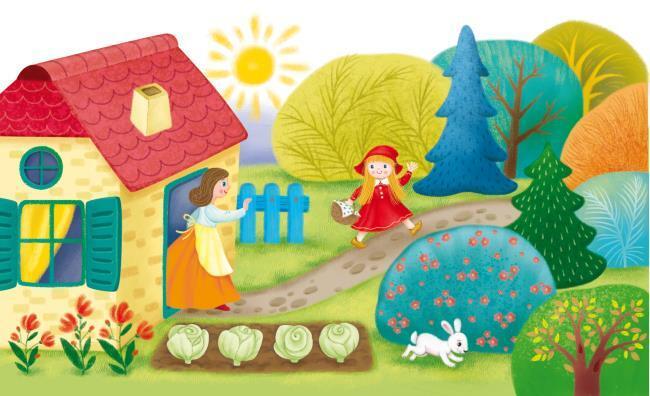 Красная Шапочка подхватила корзинку и весело зашагала в соседнюю деревню к бабушке.