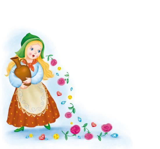 – Ты была так добра ко мне, милая, что я хочу сделать тебе подарок. Теперь всякий раз, как ты произнесёшь хоть слово, из твоих уст будут падать на землю розы или драгоценные камни.