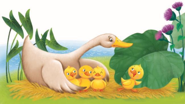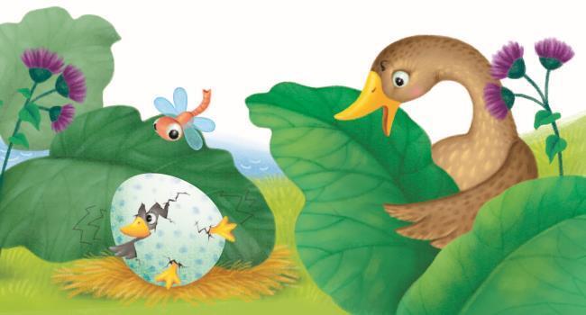 В густых зарослях лопухов сидела на яйцах утка. Занятие это ей уже порядком надоело. И вот яичные скорлупки лопнули, из них выбрались наружу маленькие утята. Но одно яйцо, самое большое, оставалось целым, и бедная утка снова уселась на него, гадая, уж не индюшиное ли оно. Наконец вылупился и последний птенец. Он был большой и нескладный, но плавал, как оказалось, не хуже других, и утка решила, что это всё же её собственный сын, а вовсе не индюшонок.