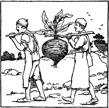 And now, by two stout boys, away They send the beet to town next day, That all the people there may see How large a beet can grow to be. They put her in a window there, Where every one can point and stare.
