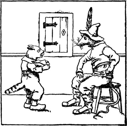 At last the kitten went to ask Advice of some old cat Who lived close by, and told her all About the robber rat.