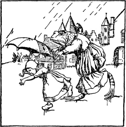 But oh, Jane was a naughty girl! On her own way intent; Soon as mamma had turned away, Out in the street she went. The streets were wet and lonely; No children there at play; Only old Mother Webtoes The frog abroad that day.