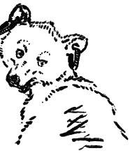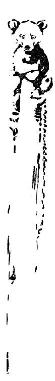 On the creek-bottom below the shack was a meadow where Lan cut enough hay each year to feed his two ponies through the winter. This year when hay-time came Jack was his daily companion, either following him about in dangerous nearness to the snorting scythe, or curling up an hour at a time on his coat to guard it assiduously from such aggressive monsters as Ground Squirrels and Chipmunks. An interesting variation of the day came about whenever the mower found a bumblebees' nest. Jack loved honey, of course, and knew quite well what a bees' nest was, so the call, "Honey—Jacky—honey!" never failed to bring him in waddling haste to the spot. Jerking his nose up in token of pleasure, he would approach cautiously, for he knew that bees have stings. Watching his chance, he would dexterously slap at them with his paws till, one by one, they were knocked down and crushed; then sniffing hard for the latest information, he would stir up the nest gingerly till the very last was tempted forth to be killed. When the dozen or more that formed the swarm were thus got rid of, Jack would carefully dig out the nest and eat first the honey, next the grubs and wax, and last of all the bees he had killed, champing his jaws like a little Pig at a trough, while his long red, snaky tongue was ever busy lashing the stragglers into his greedy maw.