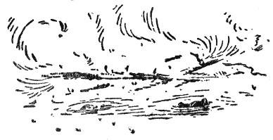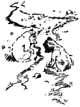 Long before he got there a curious light shone up. He knew what that was; he had seen the two-legged ones make it near the ranch of evil smells and memories, so feared it not. He swung along from ledge to ledge in silence and in haste, for the smell of sheep grew stronger at every stride, and when he reached a place above the fire he blinked his eyes to find the sheep. The smell was strong now; it was rank, but no sheep to be seen. Instead he saw in the valley a stretch of gray water that seemed to reflect the stars, and yet they neither twinkled nor rippled; there was a murmuring sound from the sheet, but it seemed not at all like that of the lakes around.