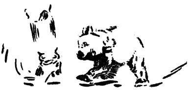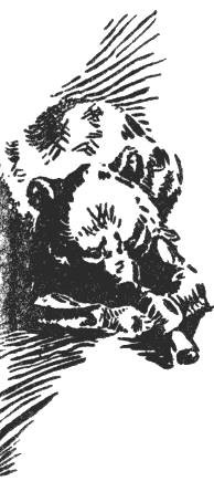 A week later his chance came. As he passed along the rim of Pocket Gulch, a small, deep valley with sides of sheer rock in most places, he saw afar the old Pinto Bear with her two little brown cubs. She was crossing from one side where the wall was low to another part easy to climb. As she stopped to drink at the clear stream Lan fired with his rifle. At the shot Pinto turned on her cubs, and slapping first one, then the other, she chased them up a tree. Now a second shot struck her and she charged fiercely up the sloping part of the wall, clearly recognizing the whole situation and determined to destroy that hunter. She came snorting up the steep acclivity wounded and raging, only to receive a final shot in the brain that sent her rolling back to lie dead at the bottom of Pocket Gulch. The hunter, after waiting to make sure, moved to the edge and fired another shot into the old one's body; then reloading, he went cautiously down to the tree where still were the cubs. They gazed at him with wild seriousness as he approached them, and when he began to climb they scrambled up higher. Here one set up a plaintive whining and the other an angry growling, their outcries increasing as he came nearer.
