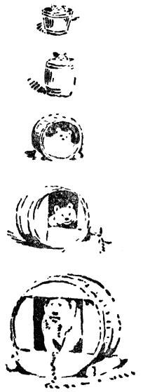 At first a butter-firkin had made him an ample den, but he rapidly passed through the various stages—butter-firkin, nail-keg, flour-barrel, oil-barrel—and had now to be graded as a good average hogshead Bear, though he was far from filling that big round wooden cavern that formed his latest den.