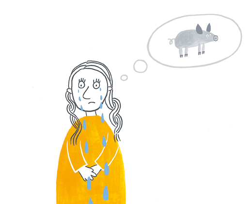 Раньше в доме мельника никто не плакал. По крайней мере, при Бетте ни одна душа своей печали не показывала. Поэтому девочка очень удивилась и даже испугалась, когда её поросёнок вдруг начал тоненько визжать, а из глаз его брызнули слёзы. Уж не рассыплется ли он на тряпочки, как старая игрушечная свинка? Но поросёнок оставался целым, и девочка обняла его, положила в свою кроватку, спела колыбельную, а ко-гда Фред заснул, Бетта взяла веник и стала подметать в комнате.