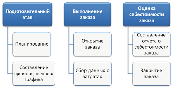 На этапе планирования производится координация работы всех подразделений, участвующих в выполнении заказа, определяются места возникновения затрат. Разработанный производственный график уточняет операции, выполняемые каждым подразделением.