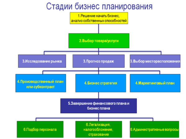 Стадии бизнес-планирования, которые следует пройти, чтобы начать свой бизнес грамотно, представлены на рисунке.