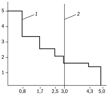 Обратившись вновь к табл. 3.1, мы видим, что при любой цене, превышающей 5,00 (жизней на 1000 бригадо-часов), ни один из проектов не был бы «рентабельным». Это означает, что стоимость затраченного рабочего времени, выраженная в жизнях, превышала бы получаемую выгоду даже для наиболее экономичных по затратам труда проектов. Соответственно, когда цены установлены на уровне свыше 5,00, спрос на рабочее время бригады оказывается равным нулю. При любой цене не выше 5,00, но выше 3,33 проект 5 был бы единственным рентабельным проектом. Таким образом, 800 часов работы бригады, требуемые проектом 5, отражены на рис. 3.1 как спрос, соответствующий данному диапазону [35] цен. При ценах не выше 3,33, но выше 2,50 рентабельными являются проекты 5 и 4. В сумме они требуют 1700 часов рабочего времени бригады, что и составляет представленную на рис. 3.1 величину спроса для цен в диапазоне от 3,33 до 2,50. С падением цены потребности в рабочем времени бригады различных проектов добавляются в порядке, перечисленном в табл. 3.1.