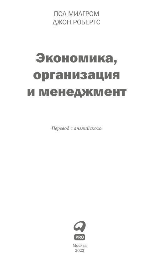 Именно этому кругу проблем посвящен представляемый вниманию читателей учебник Пола Милгрома и Джона Робертса — исследователей, внесших значительный вклад в разработку экономического подхода к изучению практики управления организациями.