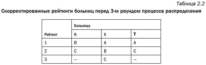 Эти доводы могут быть подкреплены примером анализа механизмов, использовавшихся для решения проблемы распределения врачей по больницам в Великобритании. Ситуация там носит более сложный по сравнению с США характер, поскольку в Великобритании существуют семь региональных рынков, каждый из которых после периода неопределенности, схожей с той, что существовала в США до 1951 г., опробовал свои собственные алгоритмы распределения. Восемь из этих различных алгоритмов были подвергнуты формализованному анализу; два алгоритма были признаны стабильными, шесть остальных — нестабильными. Два стабильных алгоритма используются до сих пор, в то время как из шести нестабильных четыре были впоследствии отвергнуты.
