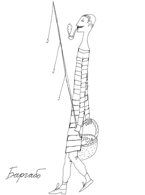 Как-то раз Баргабо застал меня дома одного. У него на крючке красовалась огромная сельдь.