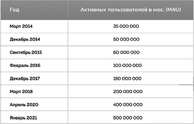 На текущий момент в России около 40 миллионов пользователей, а всего в мире их около 600 миллионов, то есть перспективы роста платформы крайне широки.