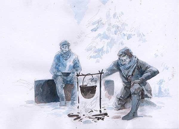 Утром Генри развел огонь и приготовил завтрак под храп своего товарища.
