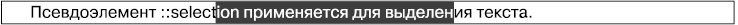 Псевдоэлементы начинаются с двойного двоеточия ::. В данном контексте псевдо означает, что они не ссылаются на явные элементы DOM, вручную добавленные в документ HTML, например элемент выделения текста.