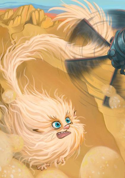 Сквозь рассеивающийся песок на него уставилось четыре глаза. Чёрные немигающие шарики, вокруг которых стремительно крутились лопасти. Они смотрели на Хухрю, а Хухря на них. Вдруг песок под мохнатым телом дрогнул, и Хухря провалился…