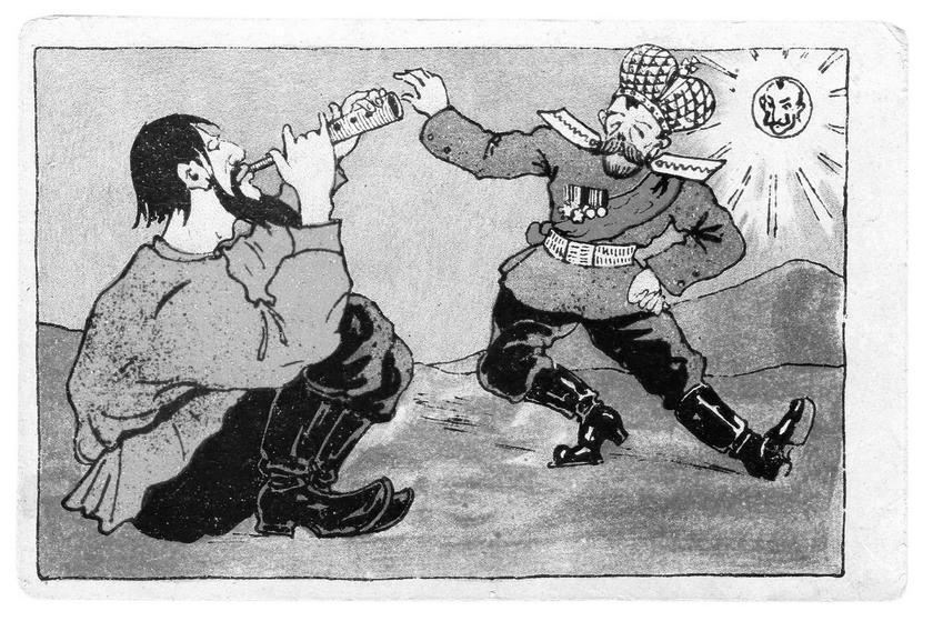 Царь Николай II пляшет под дудку Распутина.