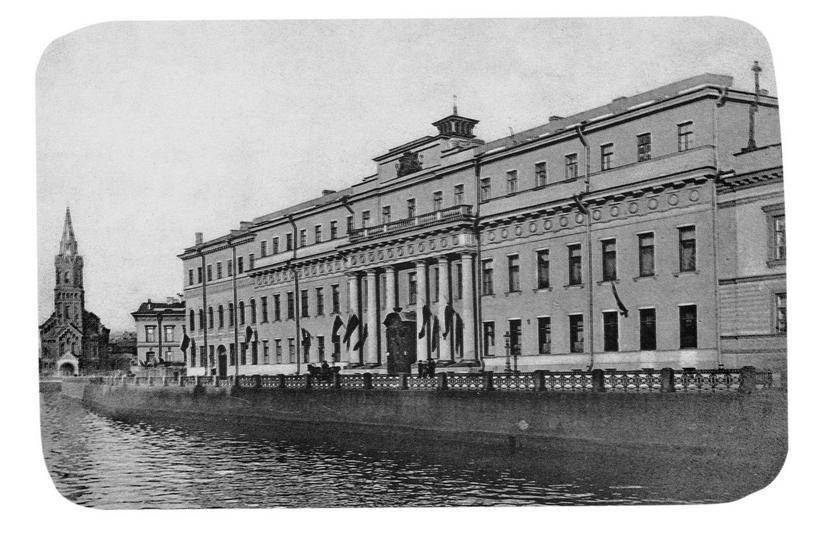 Мост через реку Мойку с видом на 3-й полицейский участок Казанской части Петрограда.
