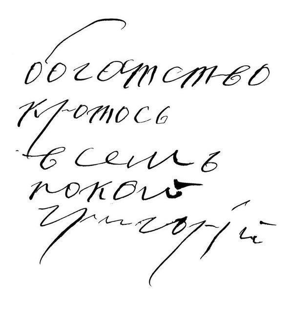 Автограф Григория Распутина. «Богатство, кротось, всемъ покой. Григорий»