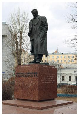 Точное географическое название нашей точки отправления в легенды Петровки звучит как «площадь Петровские ворота». Спускаясь по Страстному бульвару, мы неминуемо соприкоснемся с тремя памятниками. В самом начале Страстного бульвара совсем недавно установили памятник поэту Александру Твардовскому. Почти посреди бульвара установлен памятник Сергею Рахманинову (напротив дома № 15/29), а у площади Петровские ворота распростер свои руки к небу бронзовый Владимир Высоцкий.