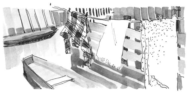Лодки встречаются на дороге и расходятся. Дорога становится полноводной, и по ней рассекают плоскодонки, швартуясь веревками у калитки забора, у крыльца.