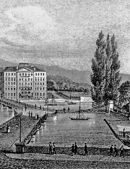 «Приехав в Женеву, – пишет Достоевская, – мы в тот же день отправились отыскивать себе меблированную комнату. Мы обошли все главные улицы, пересмотрели много chambres garnies без всякого благоприятного результата: комнаты были или не по нашим средствам, или слишком людны, а это в моем положении было неудобно. Только под вечер нам удалось найти квартиру, вполне для нас подходящую. Она находилась на углу rue Guillaume Tell и rue Berteiller (правильно: rue Berthelier Nr. 1 и угол rue Guillaume Tell. – М.Ш.), во втором этаже, была довольно просторна, и из среднего ее окна были видны мост через Рону и островок Жан-Жака Руссо. Понравились нам и хозяйки квартиры, две очень старые девицы m-lles Raymondin. Обе они так приветливо нас встретили, так обласкали меня, что мы не колеблясь решились у них поселиться».