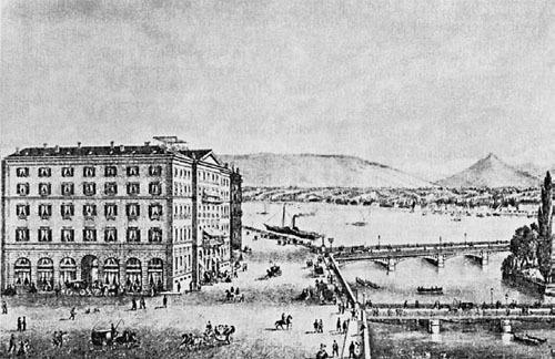 Здесь же останавливается в 1857 году Лев Толстой, приехав из Парижа. В Женеве он спасается от парижской «грязи» и принимает серные ванны. Свою поездку в Швейцарию писатель объясняет, в частности, в письме сестре 2 мая 1857 года из Кларана. Толстой присутствовал во Франции на гильотинировании, которое произвело на него такое впечатление, что он не мог заснуть. Ему хотелось уехать куда-нибудь в тихое место, чтобы отдохнуть от переживаний в «Содоме». На решение поехать именно в Женеву повлияло то, что здесь в то время находилась кузина его отца, графиня Александра Андреевна Толстая.