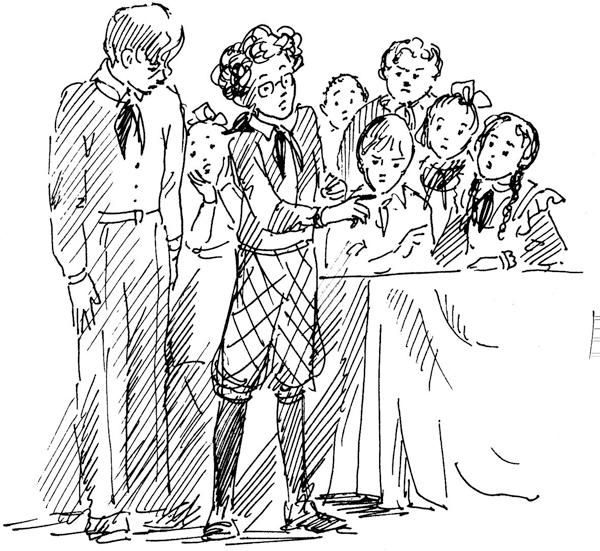 Несколько ребят сорвались с места и нырнули под парты. Через минуту учитель повернулся к классу. Все сидели уже на местах с виноватыми, сконфуженными лицами.