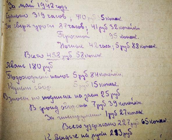 Проснулся в 6:00. В сводке сообщается, что происходили крупные бои на Харьковском направлении с немецкими частями и велись бои на подступах к Севастополю. Пошамал суп и выпил кофе. На остановку пошёл без двадцати минут семь. На УЗТМ приехал в 7:40. Серёжка оставил мне один казенник. Закончил его в 10:00. Стоял до 11:00. Получил новое сверло на 25, то уже короткое. Получил квитанцию на деньги, выписали 339 руб, книжку не получил, и не знаю сколько заработал. Вовка за тот месяц заработал 1000 с лишним. К обеду сделал два с половиной казенника. Всего сделал четыре казенника: 3012—1; 3110—2; 3117—2; 3114—2. Один казенник исправлял. В столовой ел суп лапшу, кашу манную с маслом и 200г коммерческого хлеба, 50 г крупы на 1 руб 15 коп. После обеда сразу же стал работать. Закончил к семи часам. Домой пошёл в восьмом часу. Только вышел из цеха и пошёл дождь. Весь день погода пасмурная. Домой приехал в 20:15. Мама дома, она уже сходила в мой магазин и выкупила рыбы на мясную карточку за май, полкило зелёного мыла и два коробка спичек на промтоварные карточки. Шамали все вместе, суп лапшу в столовой не брала, а сварила сама, рыба жареная и компот. Володя днем ходил в военкомат, их оказывается поставили на учёт, получил приписное свидетельство. Володю приписали в инженерно-техническое училище связи. В приписном свидетельстве не пишут, когда призываются. Володя получил деньги 283 руб. Вечером передавали по радио договор, заключённый с Англией и США. Сам Молотов ездил в Лондон и Вашингтон. Что-то упоминается о втором фронте. Плохо было слышно, завтра в газете будет. Лёг спать в одиннадцать часов.