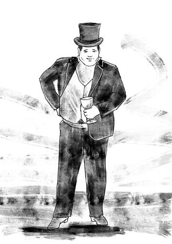 The young ladies did not drink it; Osborne did not like it; and the consequence was that Jos, that fat gourmand, drank up the whole contents of the bowl; and the consequence of his drinking up the whole contents of the bowl was a liveliness which at first was astonishing, and then became almost painful; for he talked and laughed so loud as to bring scores of listeners round the box, much to the confusion of the innocent party within it; and, volunteering to sing a song (which he did in that maudlin high key peculiar to gentlemen in an inebriated state), he almost drew away the audience who were gathered round the musicians in the gilt scollop-shell, and received from his hearers a great deal of applause.
