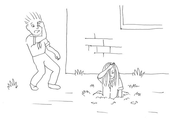Но вожатая попалась опытная и знала, на что способны советские пионеры. Она спустилась в подвал, дабы лично убедиться. Услышав приближающиеся шаги, Наташа начала красться вдоль стены подальше от лестницы и вдруг — бац! — оказалась в тёмном узком коридорчике, который от входа был совершенно не виден. Быстренько прокравшись в самые недра убежища, она затаилась. К счастью, вожатая не стала углубляться в подвал и тоже не заметила коридорчика, как давеча пионеры.