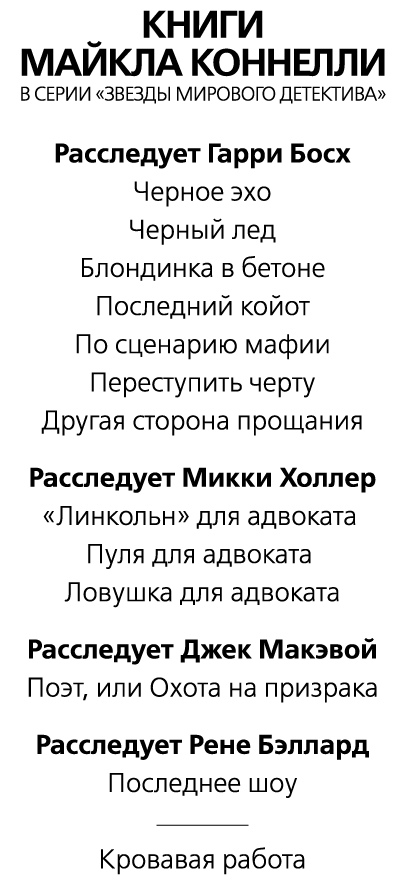 Кровавая работа : роман / Майкл Коннелли ; пер. с англ. А. Петрушиной. — СПб. : Азбука, Азбука-Аттикус, 2024. (Звезды мирового детектива).
