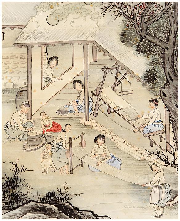 Героями жанровой живописи нередко были крестьяне. Чо Ёнсок, Ким Тыксин, Ким Хондо писали идеализированные сценки из жизни простолюдинов с воспеванием земледельческого труда (см. рис. 3). Син Юнбок изображал досуг привилегированного сословия и куртизанок кисэн (
