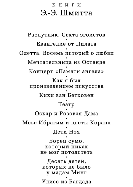 Сборник новелл Шмитта «Концерт „Памяти ангела“» получил в 2010 году Гонкуровскую премию. Писатель, как всегда, предлагает блистательные, изысканные и… совершенно неожиданные сюжетные ходы.