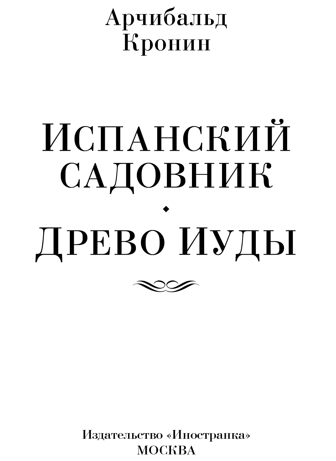 Испанский садовник ; Древо Иуды : романы / Арчибальд Кронин ; пер. с англ. Л. Бергер-Винокур, Е. Коротнян. — М. : Иностранка, Азбука-Аттикус, 2022. — (Иностранная литература. Большие книги).