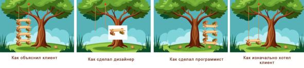 К сожалению, это обычная ситуация в сфере разработки сайтов, когда нет ТЗ или оно составлено безграмотно. Посмотрите рис. 2, что бывает при отсутствии четкого ТЗ.