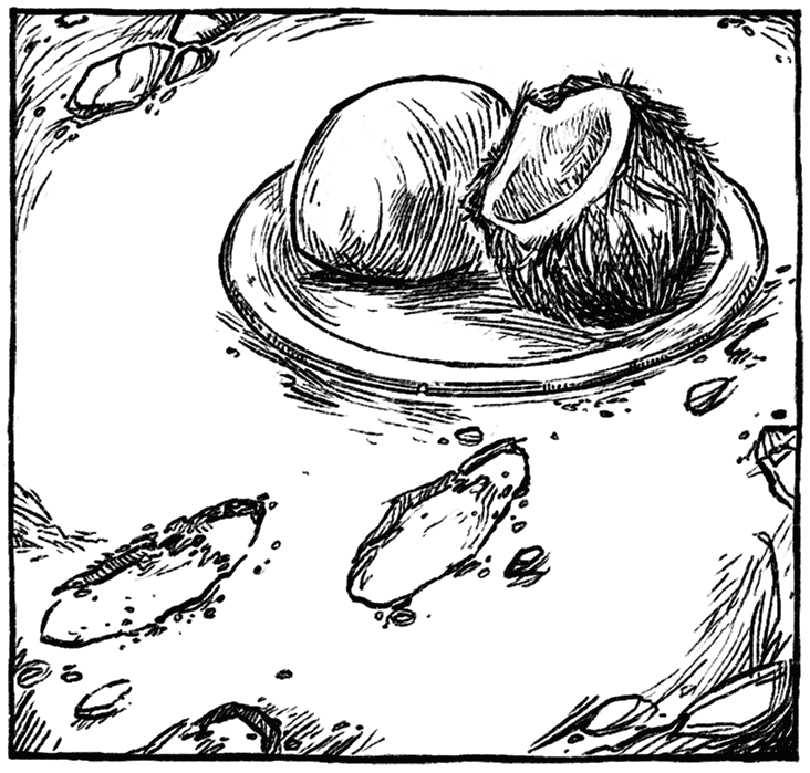 Мау моргнул и проснулся. Солнце было желтое и уже прошло полпути по небу, а рядом с Мау лежала круглая железная штука, а на ней – кокос с отрезанной верхушкой и манго.