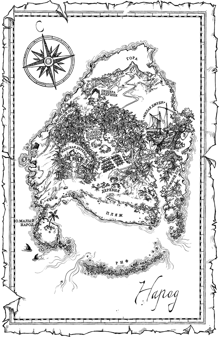 Он постарался их успокоить. Если вдуматься, остров Мальчиков – просто скала, окруженная песчаными отмелями. Верно ведь? Он ни на что не годится, разве только как пристанище для рыбаков или место для мальчиков, пытающихся стать мужчинами. А на острове Народа есть горы – ну, по крайней мере, одна настоящая гора, – и река, и пещеры, и целые леса, и мужчины, которые знают, что делать!