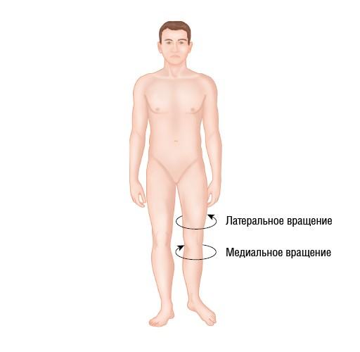 Рисунок 1.21. Вращение — движение кости или туловища вокруг собственной продольной оси. Медиальное (внутреннее) вращение — поворот внутрь, к срединной линии. Латеральное (наружное) вращение — поворот наружу, от срединной линии