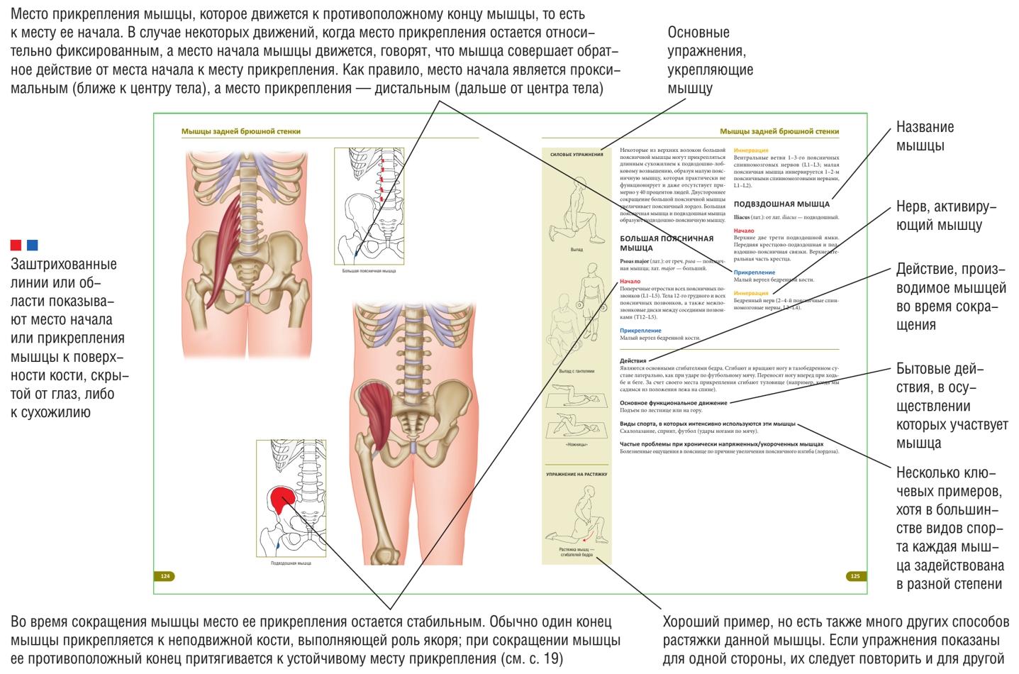 Информация о каждой мышце представлена в едином стиле по всей книге. Ниже приведен пример с разъяснением значений выносок (для некоторых мышц будут использоваться сокращенные варианты).