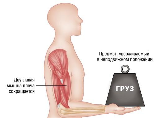 Рисунок 2.2. Пример изометрического сокращения — удержание тяжелого предмета в руке, согнутой под углом 90 градусов, в неподвижном положении