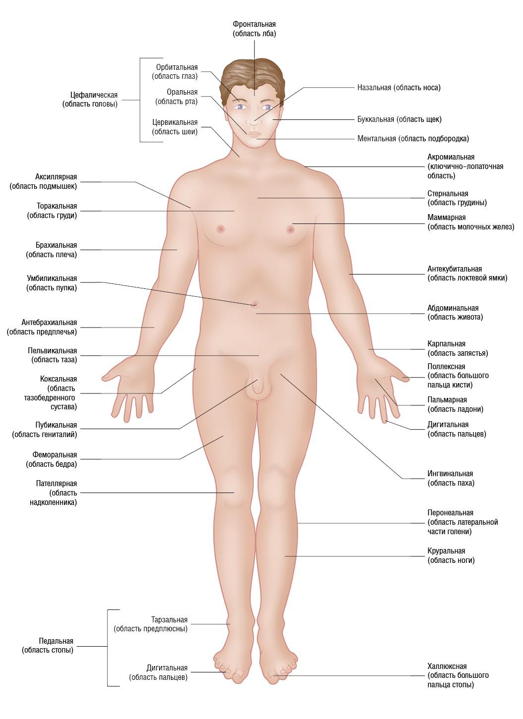 Рисунок 1.14. Термины, используемые для обозначения отдельных областей тела. Вид спереди