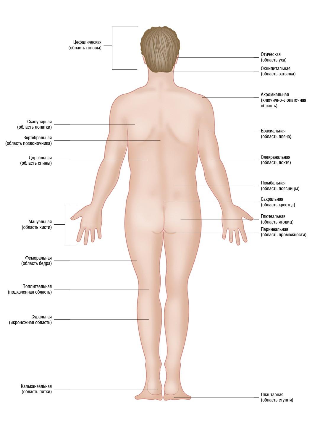 Рисунок 1.15. Термины, используемые для обозначения отдельных областей тела. Вид сзади