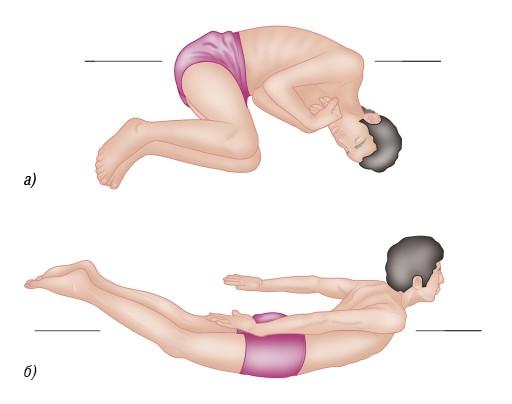 Рисунок 1.17. Сгибание и переход в позу эмбриона (а); разгибание и выход из позы эмбриона (б)