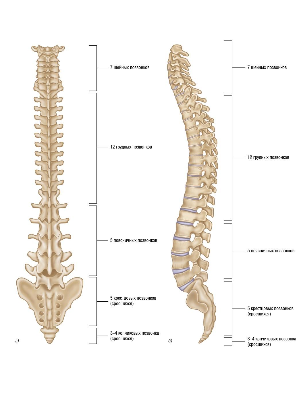Рисунок 2.10. Позвоночник: а) вид сзади; б) вид сбоку