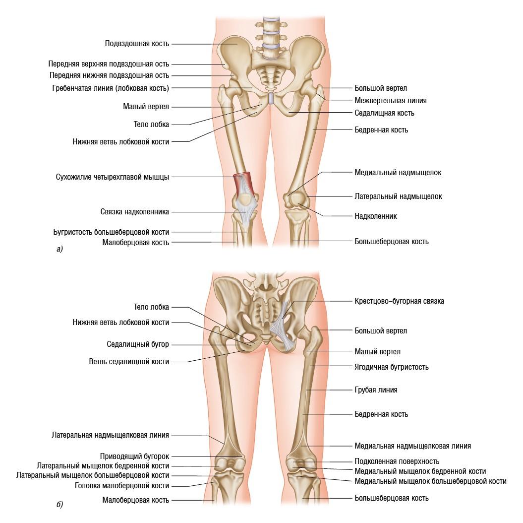 Рисунок 2.16. Область от тазового пояса до стопы: а) вид спереди; б) вид сзади