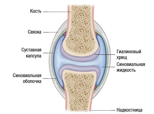Полость сустава заполнена смазывающей синовиальной жидкостью и окружена двухслойным «рукавом» — суставной капсулой.