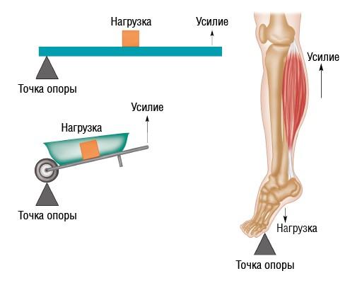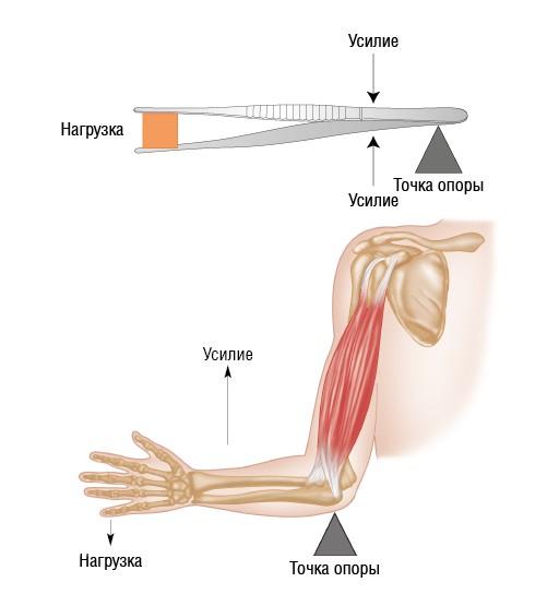 В классической биомеханике кости, суставы и мышцы образуют в теле систему рычагов, оптимизирующих относительную силу, диапазон движения и скорость, необходимые для выполнения движений. Суставы выступают в роли точек опоры, мышцы прилагают усилия, а кости несут вес части тела, которую необходимо переместить.